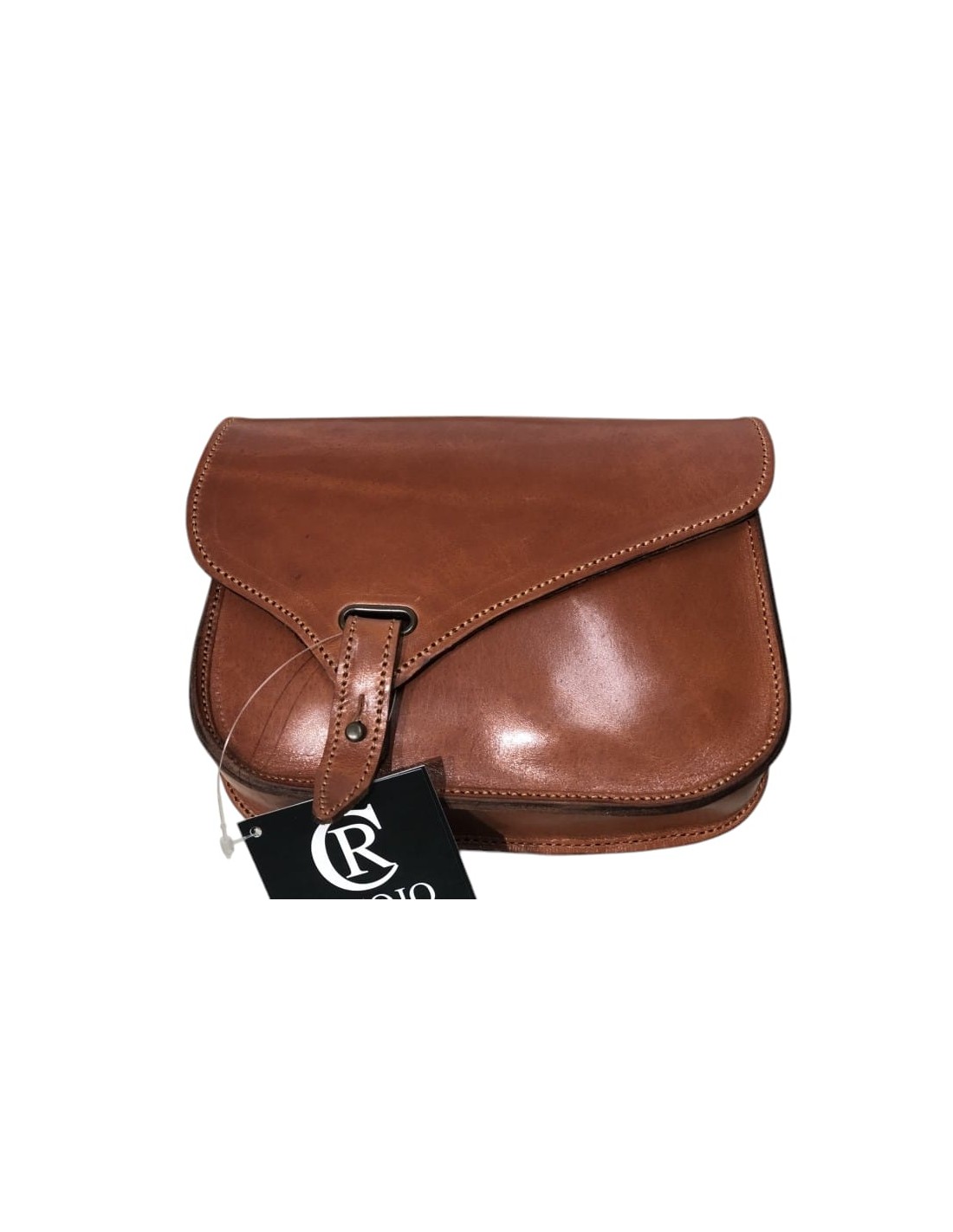 Bolso amazona de piel color avellana cierre lateral con botón.